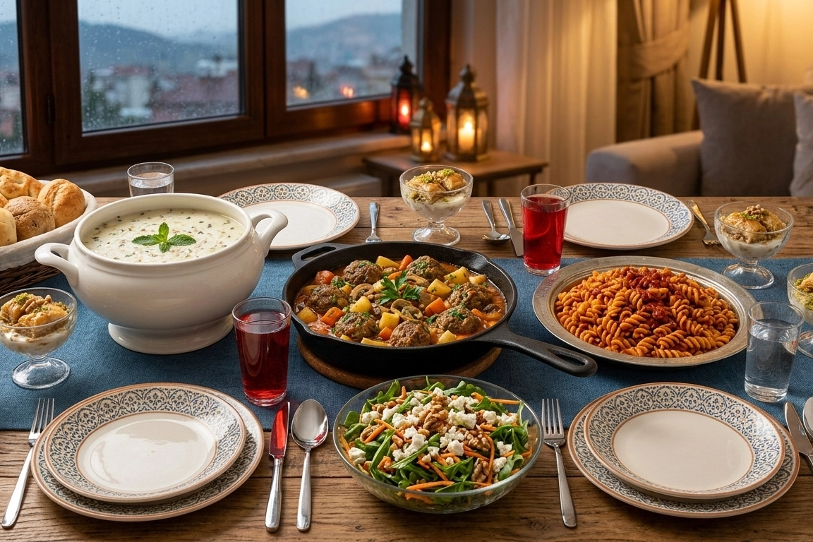 Uzman Notu: Beslenme uzmanları, yağışlı Bursa akşamında iftar sonrası ağır şerbetli tatlılar yerine bu menüdeki gibi sütlü tatlıların tercih edilmesinin uyku kalitesini artıracağını ve sindirimi kolaylaştıracağını özellikle vurguluyor.