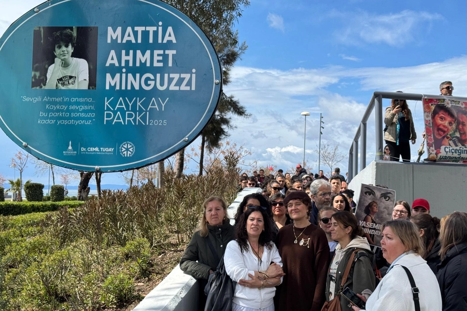 İzmir Büyükşehir Belediyesi tarafından İstanbul’da uğradığı saldırı sonucu hayatını kaybeden 14 yaşındaki Mattia Ahmet Minguzzi’nin adı verilen Karşıyaka’daki kaykay parkı anlamlı bir etkinliğe ev sahipliği yaptı. 28 Mart’ta oğullarının adının parka verilmesi nedeniyle İzmir Büyükşehir Belediye Başkanı Dr. Cemil Tugay’a teşekkür ziyaretinde bulunan Minguzzi ailesi, pazar günü de kaykay parkını ziyaret etti. İzmir halkı da aileyi yalnız bırakmadı. Ahmet Minguzzi’nin annesi Yasemin Minguzzi’ye eşlik eden İzmirli kadınlar, Mattia Ahmet Minguzzi fotoğrafları ve “Yasemin çiçeğimizin yanındayız” sloganıyla yürüdü. İzmirliler ailenin üzüntüsüne ortak olurken, sokak güvenliğinin önemine dikkat çekerek, gençlerin korunmasına yönelik beklentilerini dile getirdi.